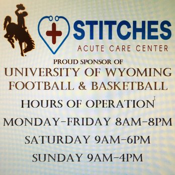 Stitches Acute Care Center at 3810 Grand Ave Laramie WY 82070. Stitches Acute Care Center 49 454 reviews Healthcare Laramie WY 82070 United States 3810 Grand Ave Laramie WY 82070 United States Call business. Stitches Acute Care Center promptly evaluates and treats a wide variety of your medical conditions from bronchitis to ingrown toenails and suturing lacerations.